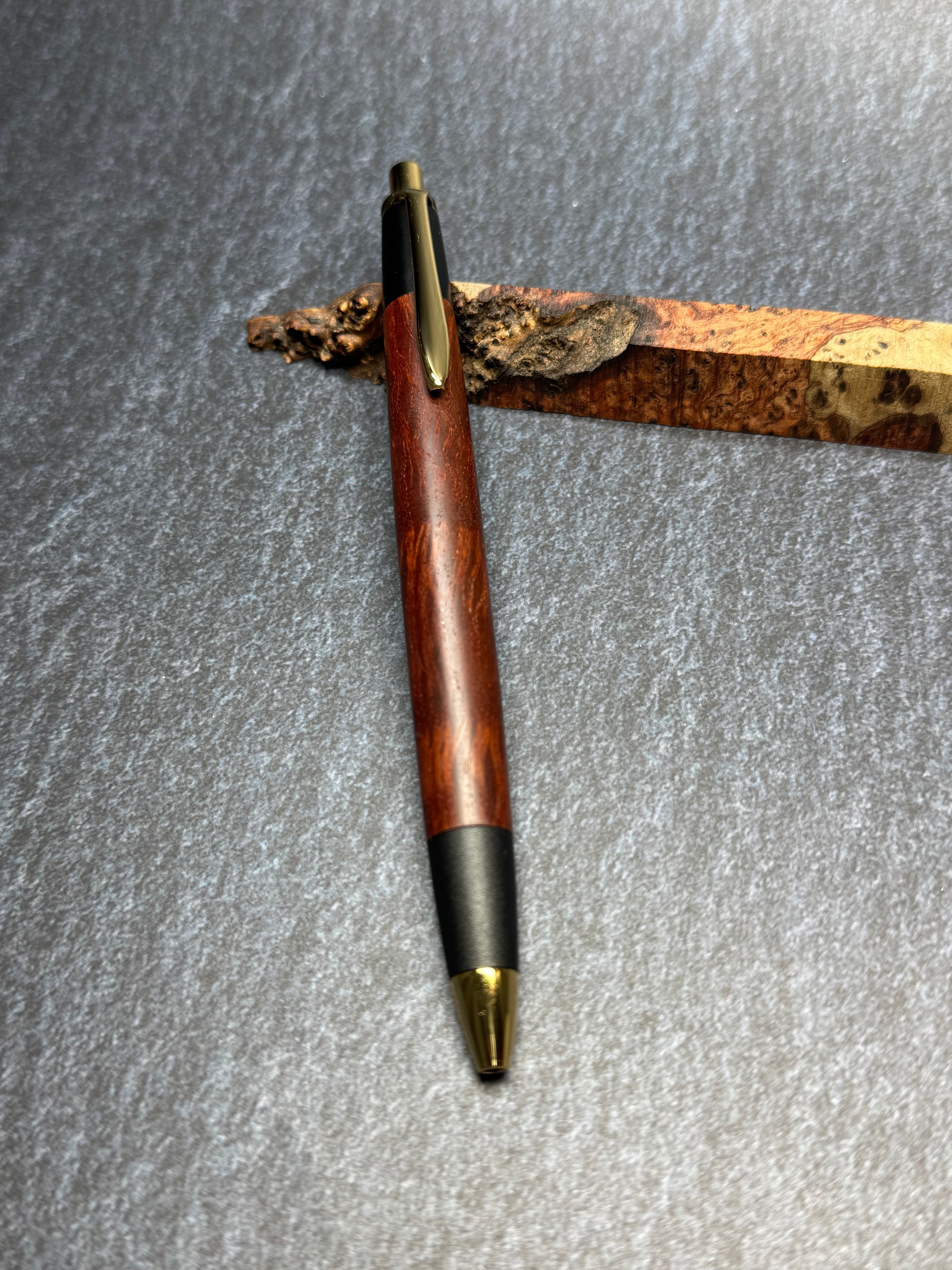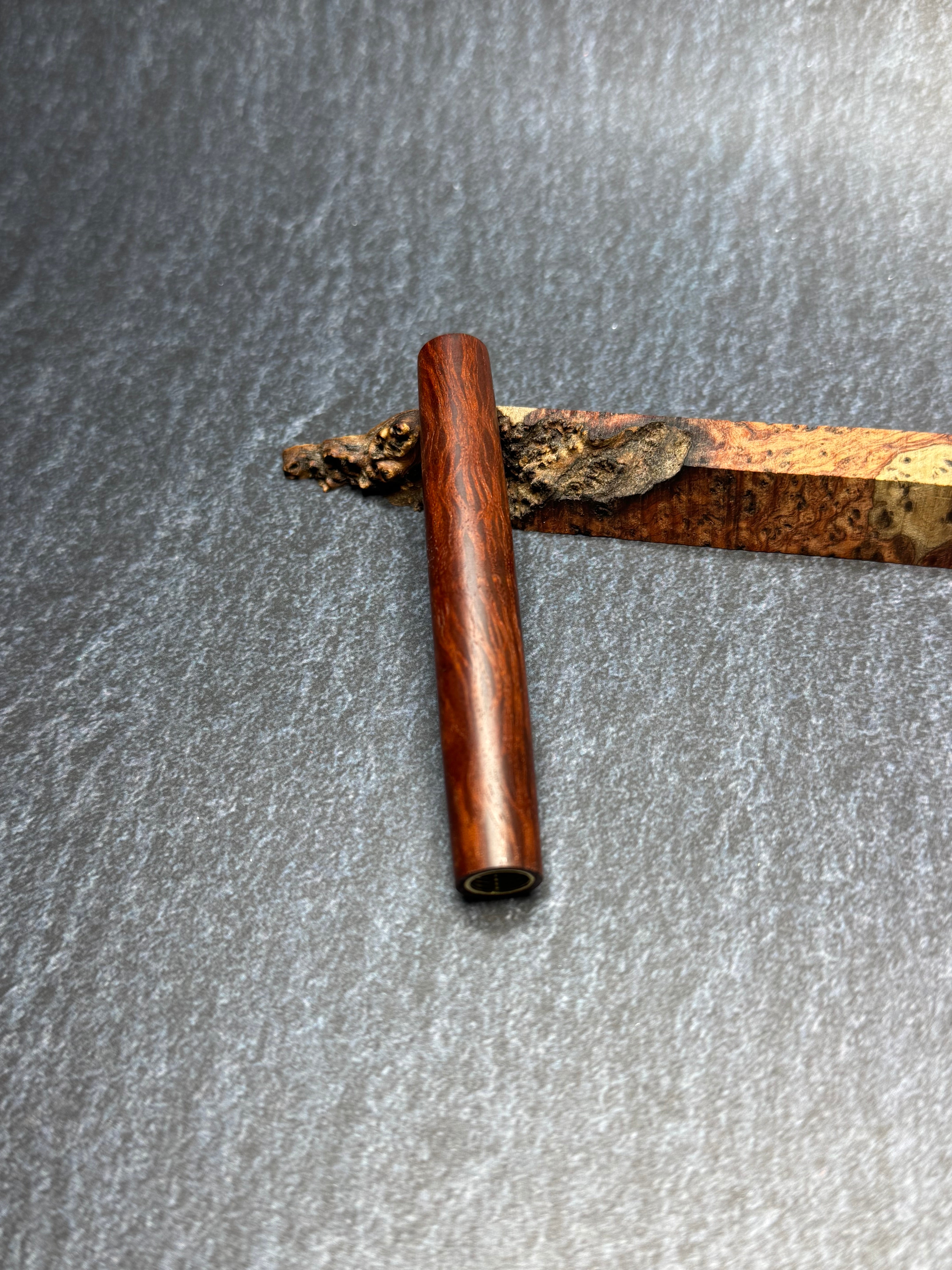樹種 : レースシーオーク縮杢極上 真鍮金具用木軸